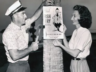 From the very beginning, the residents of Satellite Beach were good-hearted volunteers happy to serve their community. This included generous offerings of their time, talents and treasure. Elected officials all served without pay, a practice that continues today. Many of the city structures, including the first civic center, city hall/fire department complex and library were all built using volunteer labor with much of the materials being donated. Louis Olson and the Hedgecock brothers were extremely philanthropic, donating land for the first city ball field, Olson Park. The Fire Department was manned by all volunteers, with Shine Hedgecock as the first Fire Chief, until 1964 when one professional firefighter was hired. The first elementary school, Surfside, opened in 1962 with teachers and volunteers stepping up to move furniture into classrooms so the school would open on time. The interior of the original library (now City Hall) was finished in 1967 by volunteer labor and residents donated over 6,000 books and periodicals to fill the first shelves. The original recreation center was built in 1968 on a tennis court paid for from funds earned from Little League concession stand profits. In 1977, the SBVFD bought and donated land to the city (Cinnamon and South Patrick) for a new fire station. Service organizations flourished and played an important role in serving the community, in particular was the Woman’s and Lions Clubs, and Jaycees. The spirit of volunteering born from the city founders continues today. Loyal volunteers continue to raise and lower flags, help maintain Samsons Island Nature Park and assist with various Fire and Police Department initiatives. Most notable are those unique selfless volunteers that demonstrated “the difference one person can make” while serving their community, like Al Carlson; Richard Rogers; John Baker; Fred Robichek; Reg and Olive Leonard; George Cavanaugh and Scotty Culp, to name a few.